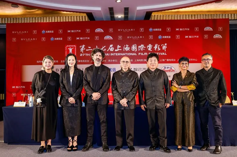 6月13日第27届上影节正式开幕,当日下午今年主竞赛单元评委会,举行了记者见面会。评委会主席意大利导演、编剧朱塞佩·托纳多雷,中国演员、导演黄渤,中国演员咏梅,印度导演、制片人、编剧 基兰·饶,阿根廷导演、编剧伊万·冯德,希腊制片人萨纳西斯·卡拉萨诺斯和中国导演、编剧、纪录片制作人杨荔钠一起出席。